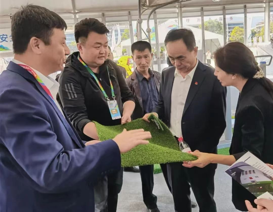 凯发体育携户外运动与休闲人造草整体解决方案亮相会场。作为国内首家通过足联、曲联双认证的企业可根据不同用户的户外运动需求,生产多种类型的户外运动草坪。