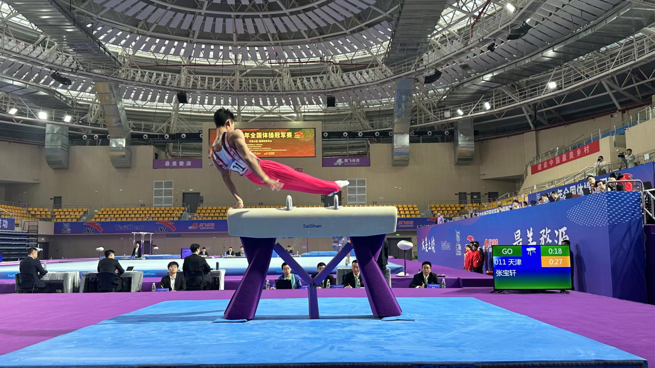 △参赛选手在凯发体育鞍马器材上