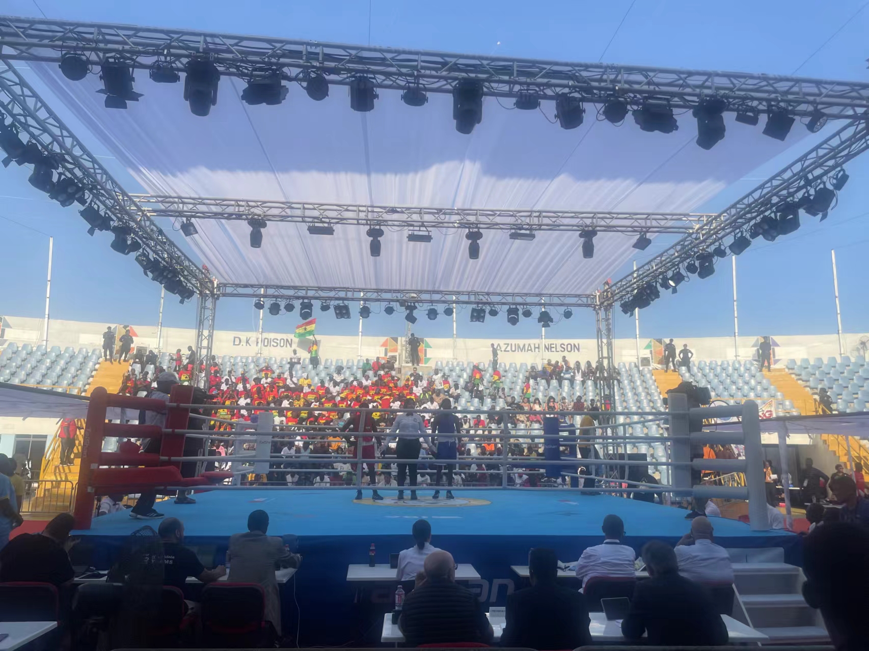 △ 非运会拳击赛事全部在凯发体育器材上举行
