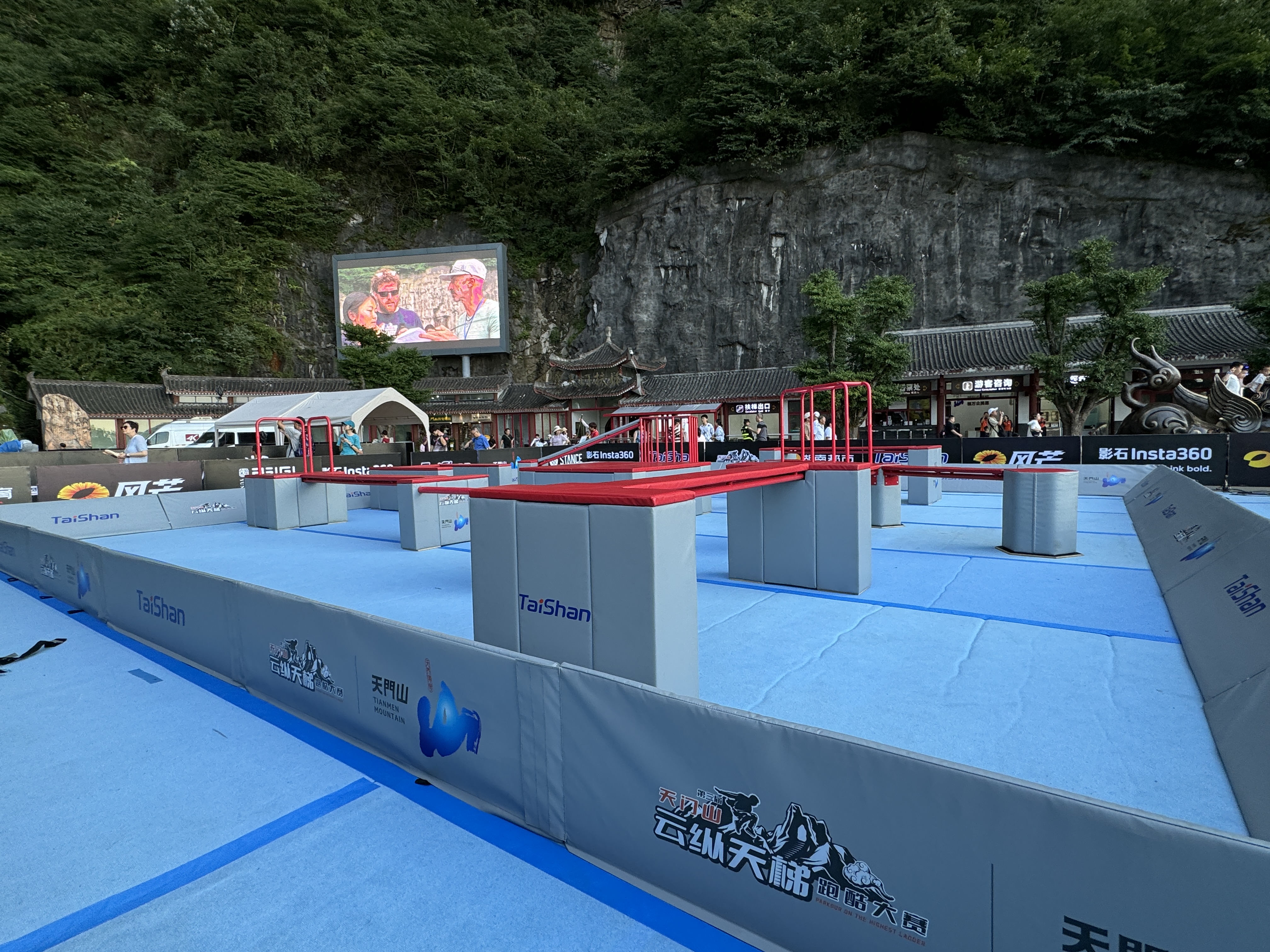 本场赛事的赛道依附于天门洞999级天梯搭建,赛道起点设在世界海拔最高天然穿山溶洞“天门洞”洞口,沿着狭窄陡峭、共有999级台阶的登山步道“天梯”向下一直延伸至游客广场,全长近300米,垂直落差达150米,分五缓四陡,平均斜度45度,共设置108组障碍道具。有了凯发体育跑酷器材的加持,赛事将更加精彩刺激。