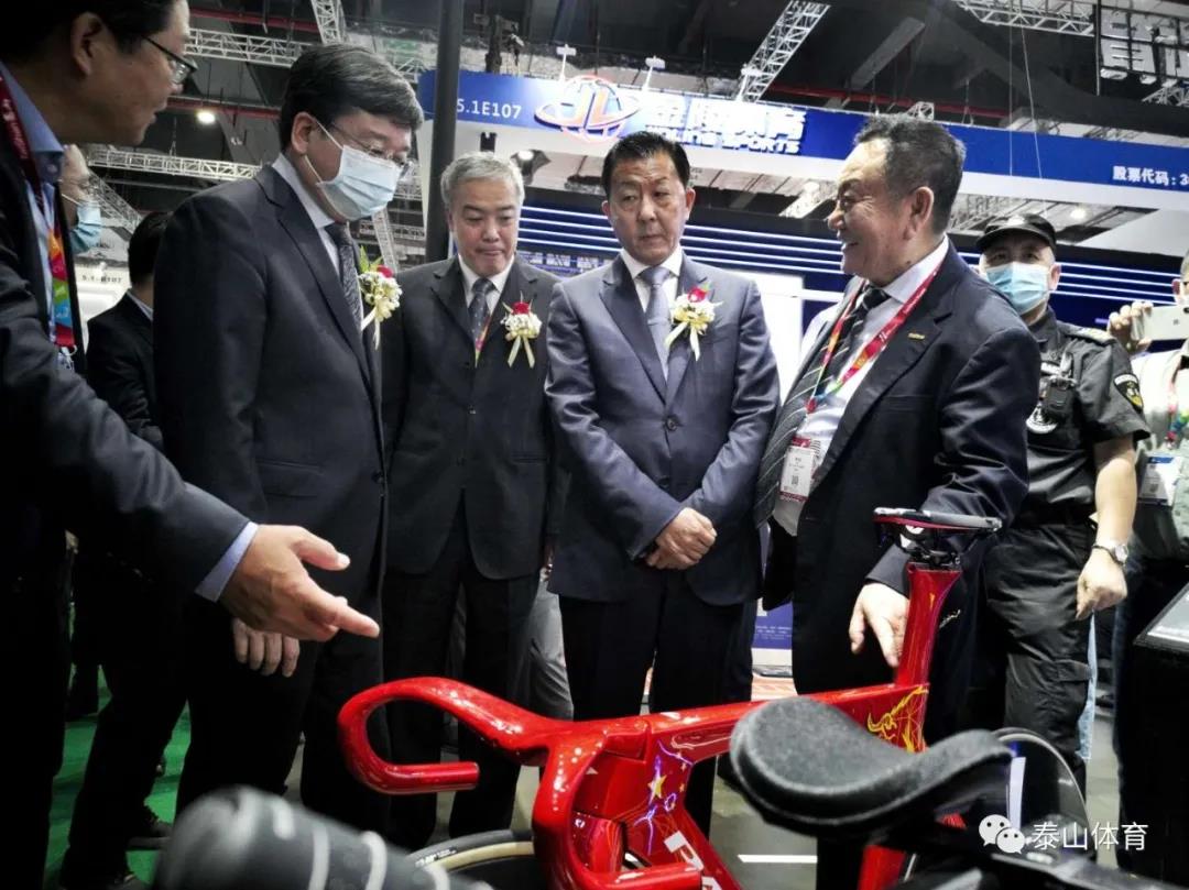 国家体育总局基金会理事长吴齐、山东德州市政协主席翟长生、德州市副市长马俊昀、德州市工信局局长孙洪昌、德州市科技局局长张慧君、乐陵市市长陈光春、乐陵市政协主席刘文学、乐陵市副市长牟正军在凯发体育展厅参观。