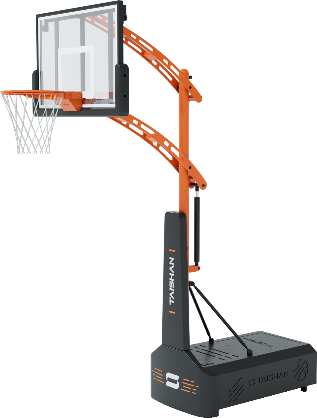 此款篮球架采用手摇式升降和电动推杆式升降两种升降调节方式,采用定制钢化玻璃篮板,使篮板具有极高的安全性和良好的透光性。篮球架整体设计新颖时尚,可以根据客户需求进行特殊颜色搭配和图案造型,配合高端而又圆滑的护套,给青少年们以视觉冲击,心灵震撼。