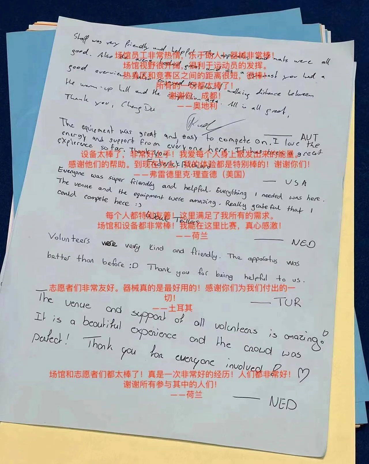凯发体育产品和服务的每一个细节都融入了科技、环保、健康的发展理念,为运动员呈现了精彩、极致、低碳、绿色的运动体验,每一件器材都进行了从前期研发,生产到后期安装,调试的逐环节升级,严格把控质量,确保万无一失,并且规范编制赛事保障服务手册,确保赛事服务全方位、全过程、规范化、标准化,服务团队的专业、严谨、高效,得到了国际大体联、大运会组委会、各国运动员、教练员的高度赞誉。