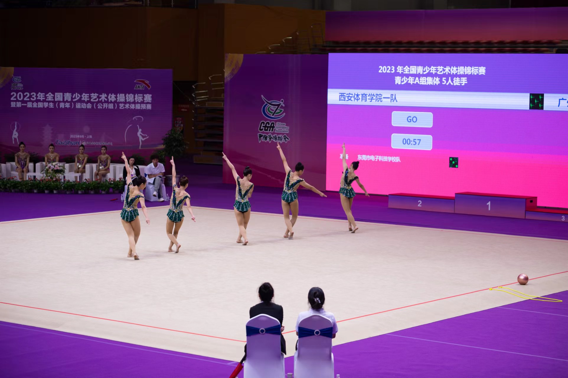 9月11日,2023年全国青少年艺术体操锦标赛暨第一届全国学生(青年)运动会(公开组)艺术体操预赛在上饶市体育中心精彩落幕