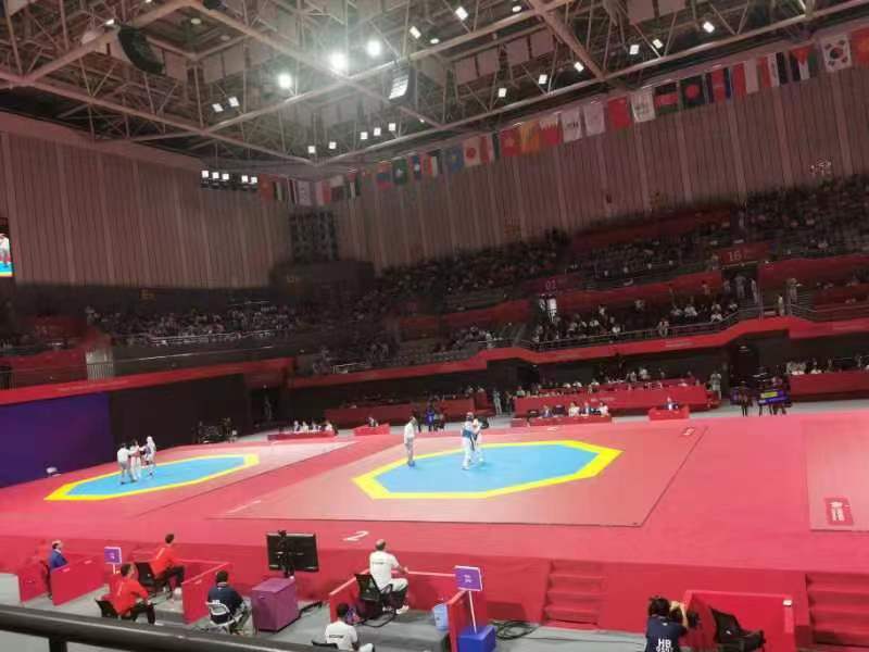 杭州亚运会上的跆拳道比赛系列产品是凯发体育自主研发设计,其制生产工艺,环保要求及舒适度上都达到了世界领先水平。从研发、铺装、使用、维护,凯发体育在跆拳道赛事上全程保驾护航。作为世界跆拳道联合会认证的产品,凯发体育跆拳道系列产品已经在奥运会,亚运会,全运会,大运会等各大赛事中得到了肯定。从场地专业垫到高科技护具再到配套产品,凯发体育随世界跆拳道运动的发展不断提升。