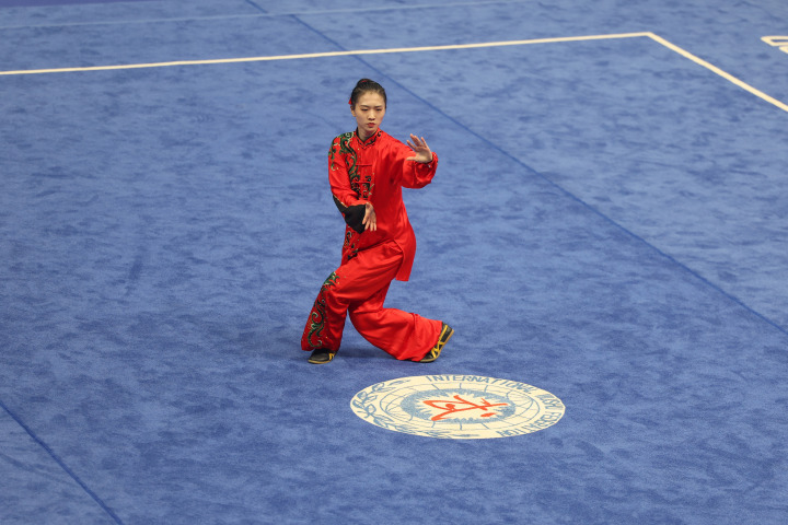 本届亚运会武术比赛,中国队一共派出11名选手参加11个小项的争夺。其中,武术套路比赛有8个小项,中国队除了在女子长拳和男子南拳南棍两个项目中未派选手参赛外,其余6个项目全部夺金。武术散打比赛中,中国队5名参赛选手李玥瑶、吴晓微、江海东、王雪涛、何烽相继登场,共收获5枚金牌,包揽了参赛项目的金牌。