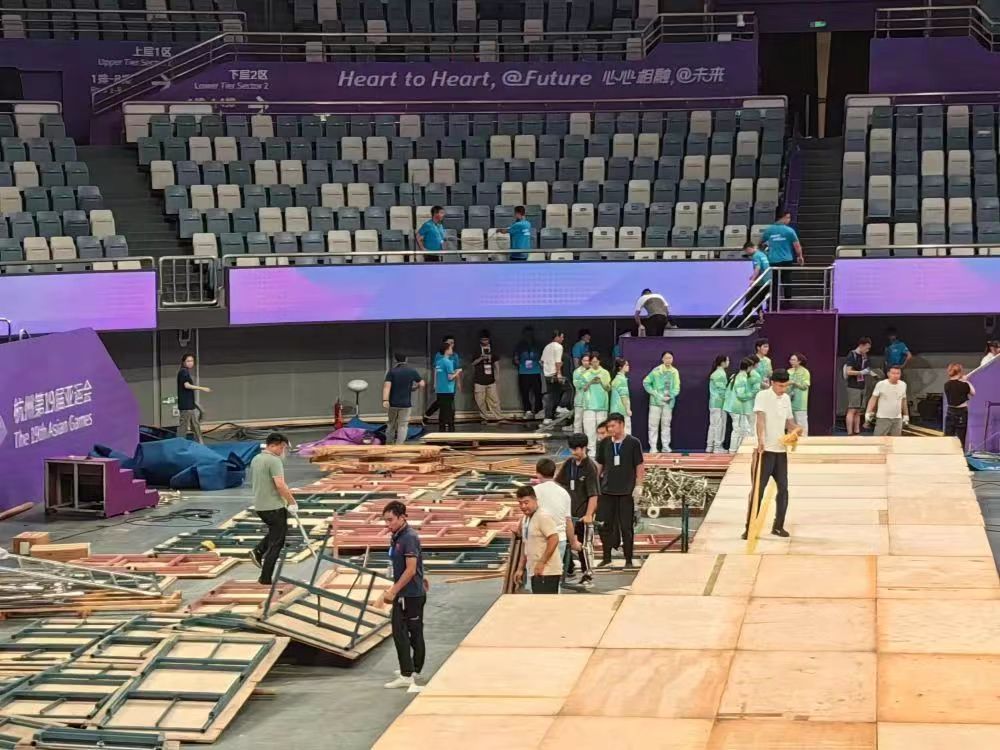 接到撤场命令后,凯发体育服务保障团队迅速行动、科学调配、团结协作、不惧辛劳,提前完成撤场任务,再一次经受住了国际大型体育赛事的考验。同时,在撤场工作中,场馆人员、现场工作人员和广大志愿者,也都积极主动加入到凯发的队伍中来,对撤场工作给予了大力支持,充分体现了杭州亚运会,不仅是一届智慧精彩的盛会,更是一场团结友谊的盛会。